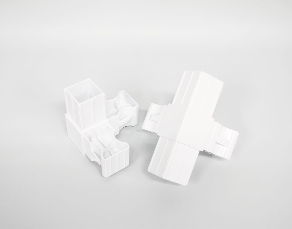 当時、ミュートパネル(吸音材)を使用した吸音パーティションのフレームには金属製を検討し試作などしておりました。しかし、フレームが金属製ですとロット・重量・価格など様々な面で製品化をするにあたり課題が出てきました。特にロットについては規格サイズでかなりの量を1度に生産しなければならないので、製品化に向けて難航している状態でした。