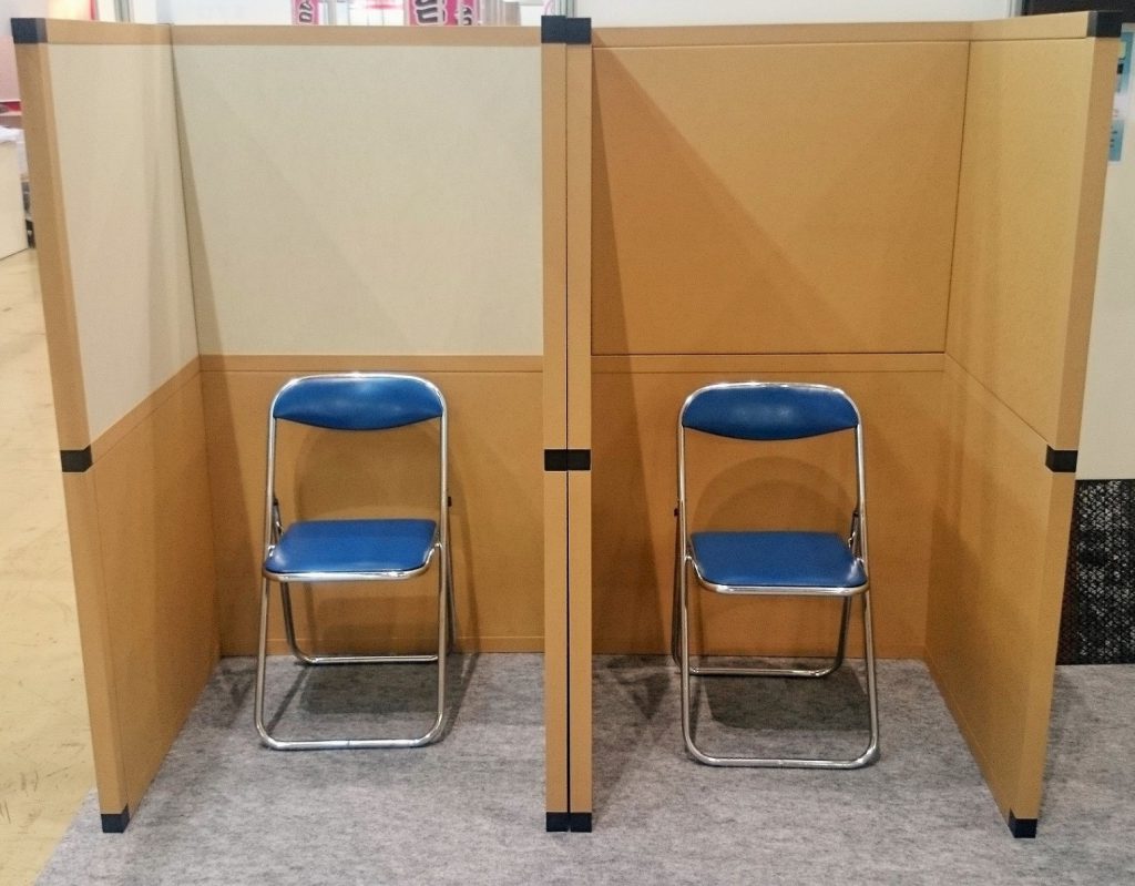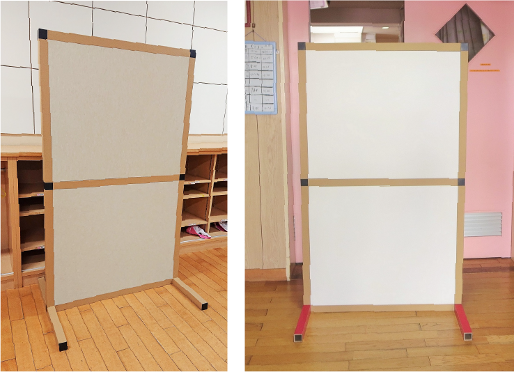 左:ミュートボード使用のパーティション 右:紙製パーティション